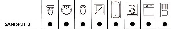 A Sanisplit 3 készüléket olyan helyre ajánljuk, ahol a készülékre hátsó kifolyású talpas WC mellett további két rákötés szükséges (kézmosó, mosdó, zuhanyzó stb.).